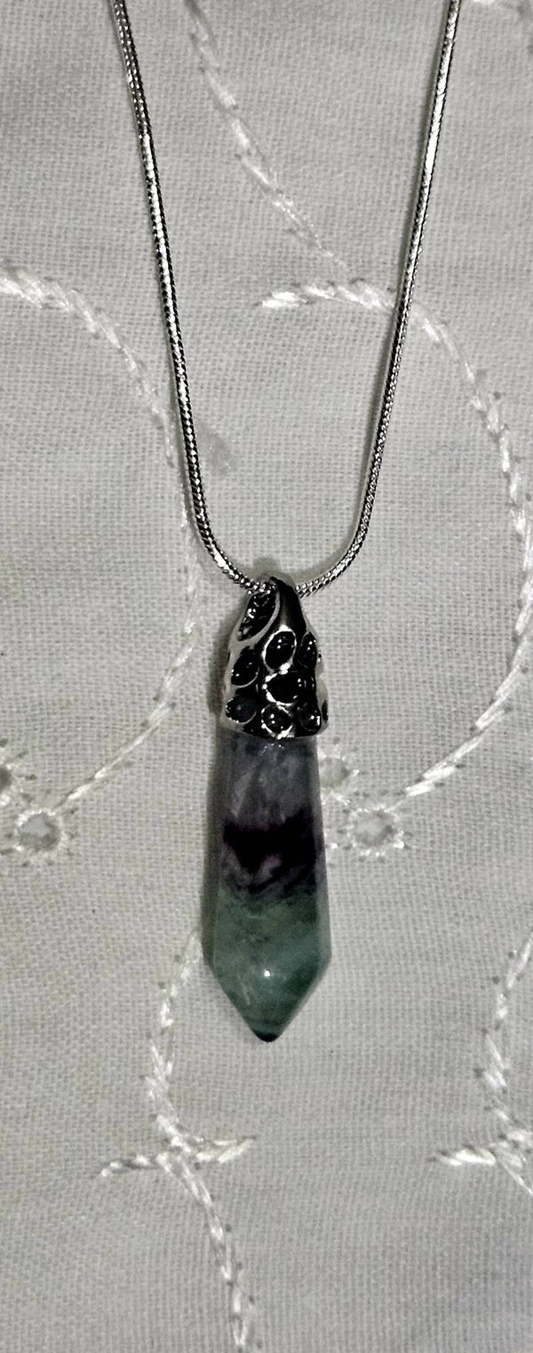 NATURAL RAINBOW FLOURITE HEXAGON PENDANT STERLING SILVER CHAIN IS FREE
