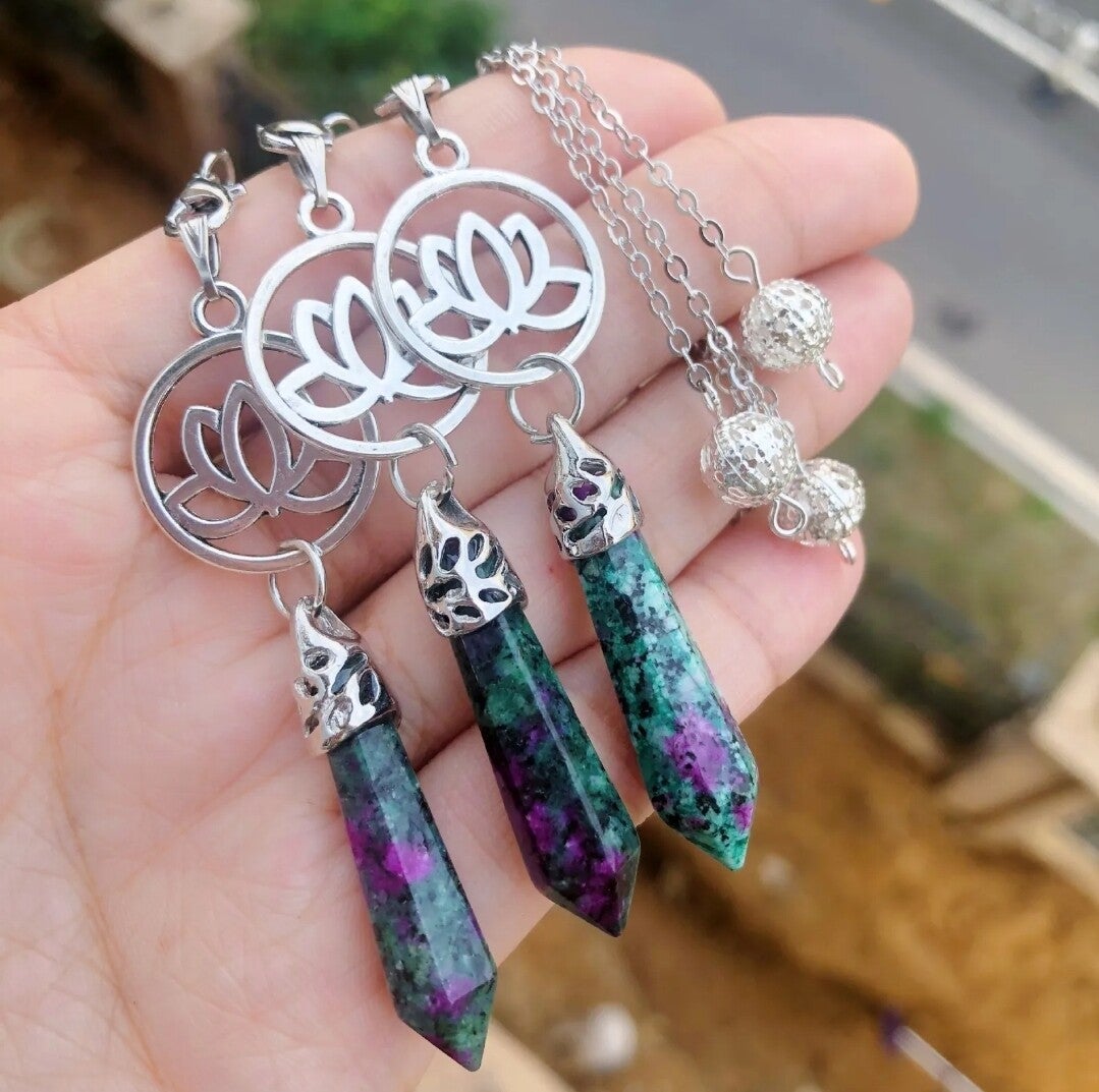 Natural Epidote Pendants w/ sterling silver flower of life