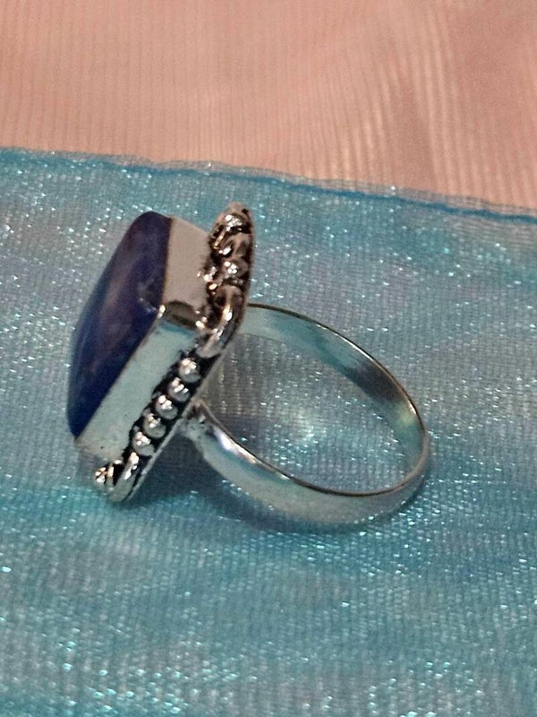 NATURAL LAPIS LAZULI STERLING SILVER RING US SIZE 6.5