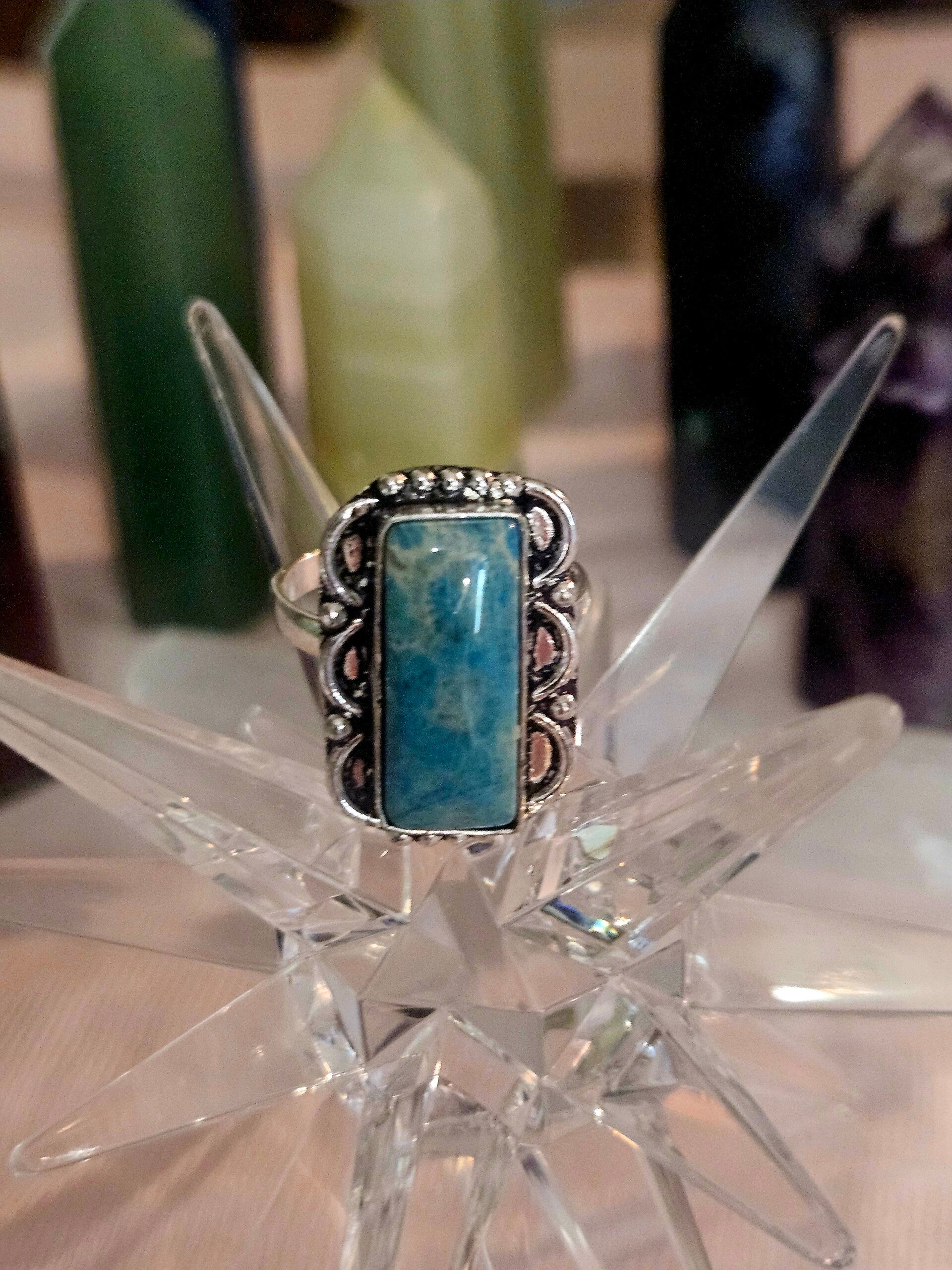 NATURAL LARIMAR SET IN STERLING SILVER RING US SIZE 8