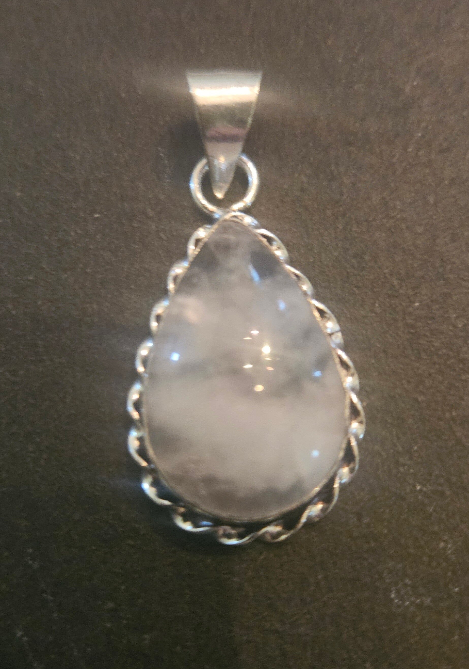 NATURAL QUARTZ CRYSTAL PEAR SHAPED PENDANT SET ON STERLING SILVER