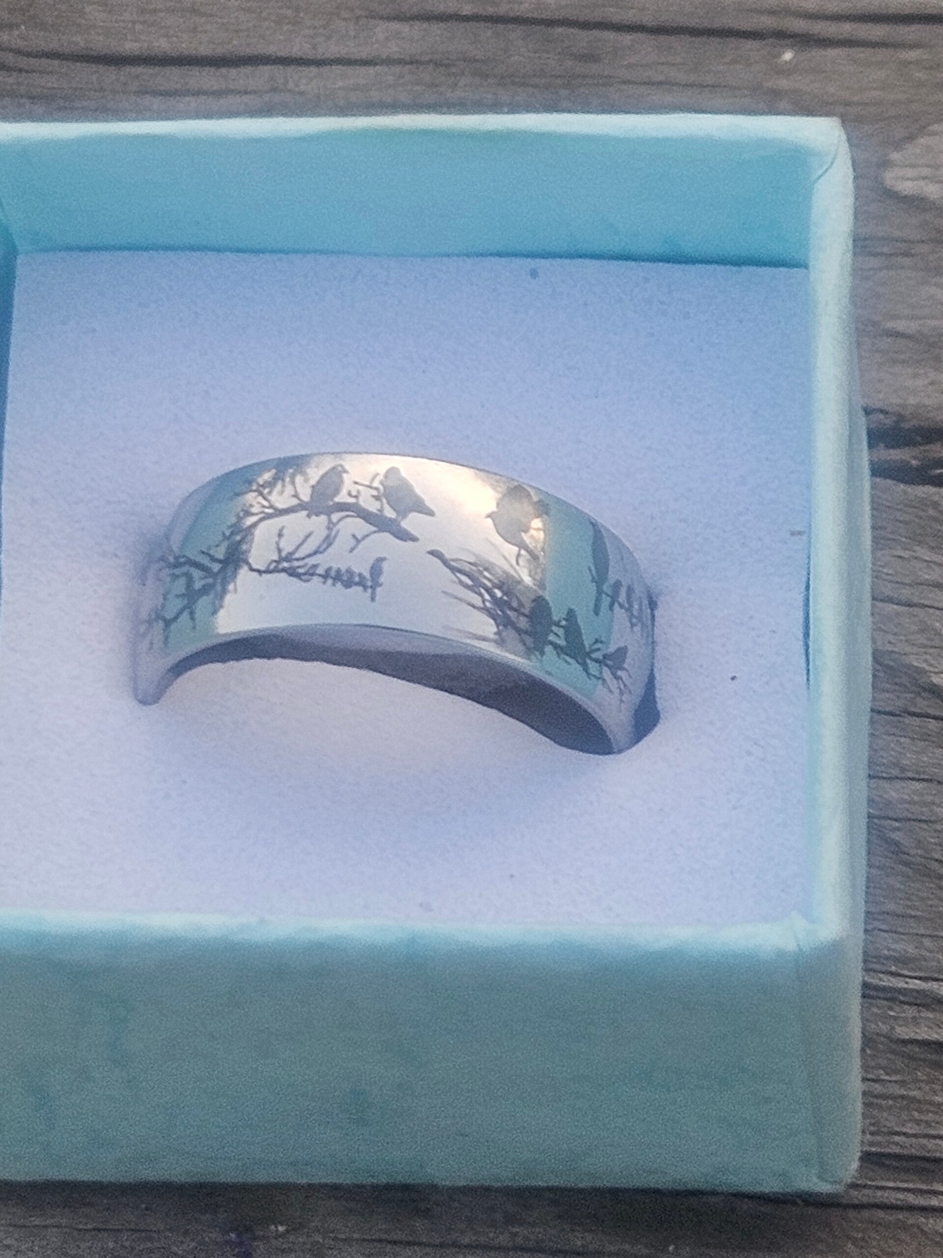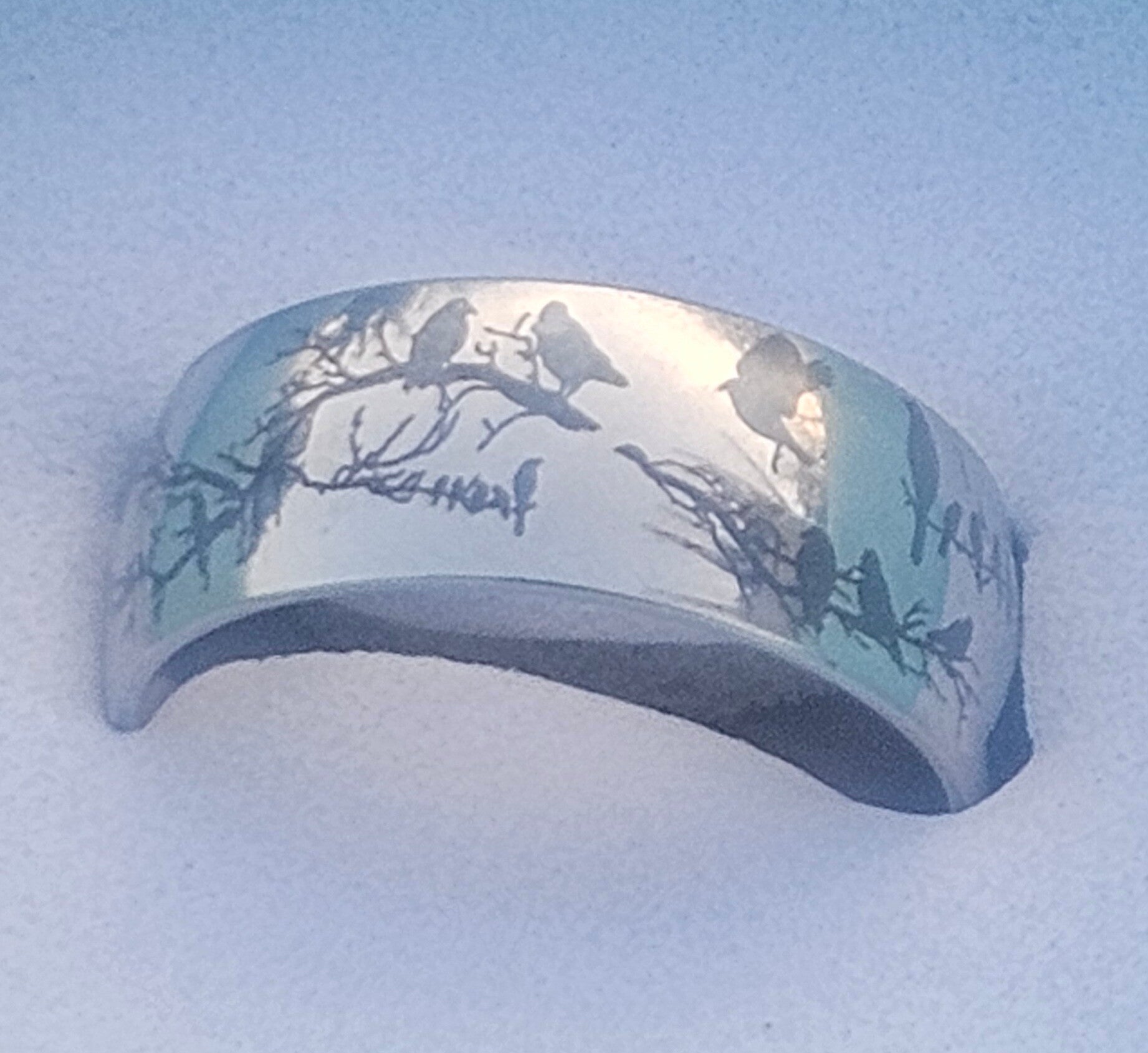STAINLESS STEEL MENS RING BLACK CROWS SITTNG IN THE TREES