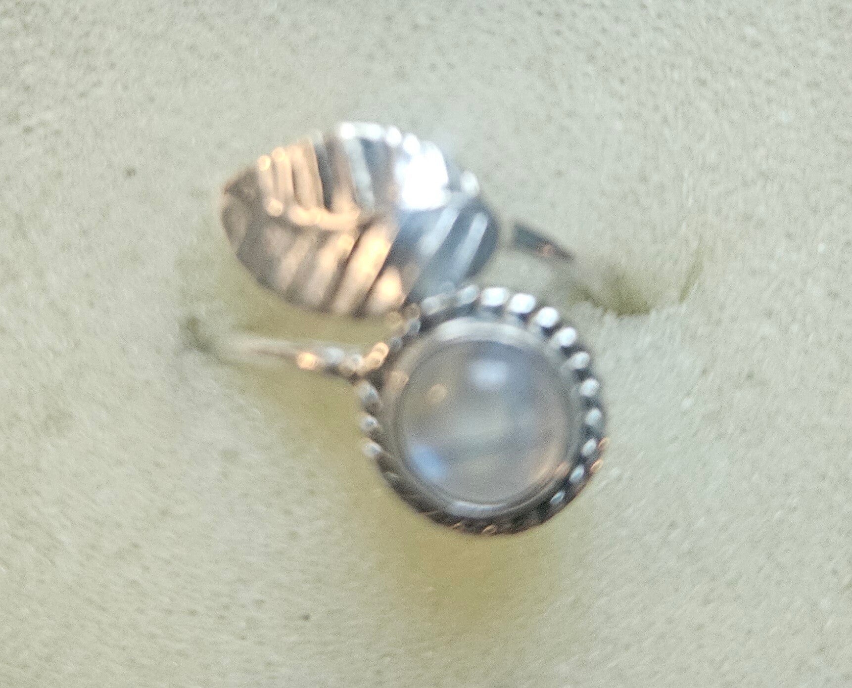 SOLID STERLING SILVER NATURAL MOON STONE OPEN BAND LEAF RING ADJUSTABLE